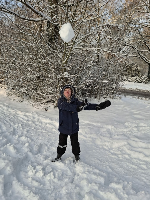 We begonnen met een sneeuwballengevecht. Spelenderwijs werkte Jelle aan rennen, draaien en ontwijken van de sneeuwballen, maar vooral ook aan samen plezier maken. Daarna zochten we een heuveltje op en renden we door de sneeuw omhoog. Een uitdagende oefening die niet alleen zijn kracht en conditie aanspreekt, maar ook doorzettingsvermogen en zelfvertrouwen vraagt. Met de slee ging hij weer naar beneden wat zorgde voor veel pret en ontspanning!